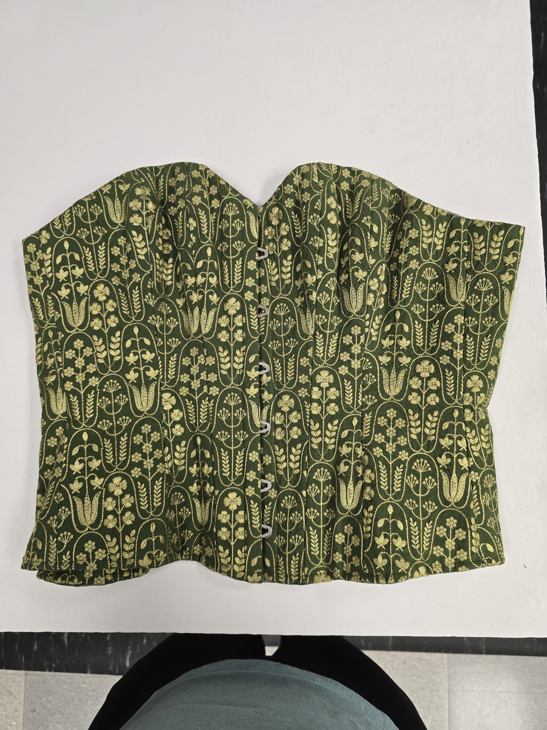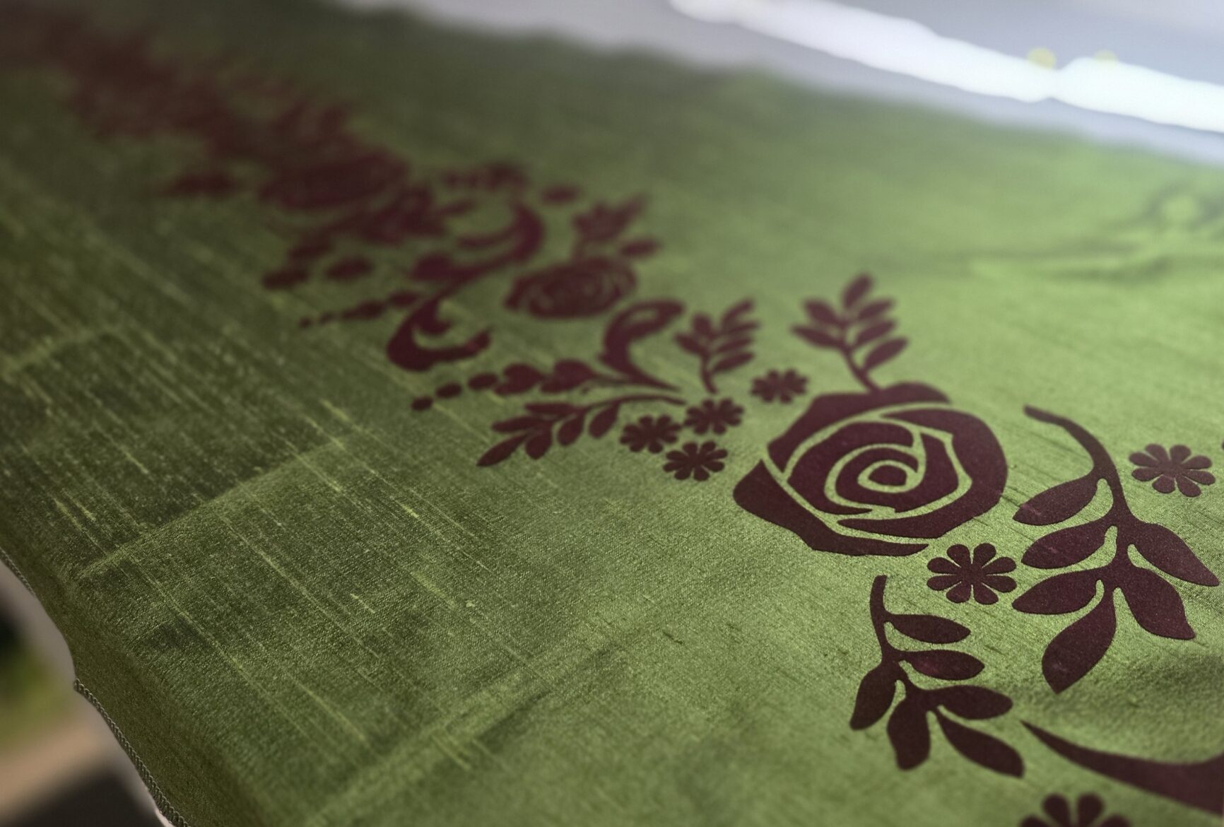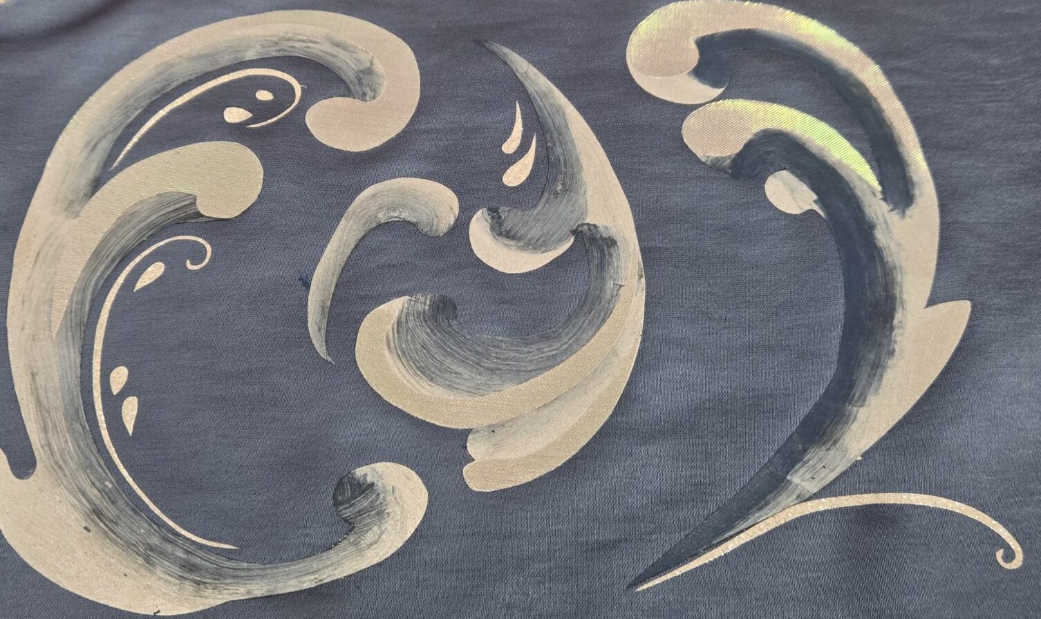 Designer renderings are a great tool to provide a feel for design and detail to the costume shop; however, when working with a Cricut, you need clean edges and specificity in the scale of designs. I was excited to use my skills in CAD (Computer-Assisted Design) in software such as Adobe Illustrator, combined with my draping and flat patterning knowledge, to create digital maps of the potential design options for both Anna and Elsa. This way, we had clear and direct communication with the designer to mock up designs and make real-time changes before any material was used. For Anna, I was given images of trims for inspiration and found transparent PNG images of similar silhouettes online, and combined the motifs to create her skirt panel designs. I applied this to a digitally drafted pattern of the skirt panel with two options for the density of the design, and our designer was able to tweak things until it was perfect. For Elsa, our designer gave the rosemalling inspiration to our craftsperson, who was able to digitally paint a collection of swirls to use as elements for a larger design. Once those elements were simplified into outlines, I created the digitally drafted pattern of the duster to lay out the individual swirls and create the overall design map.