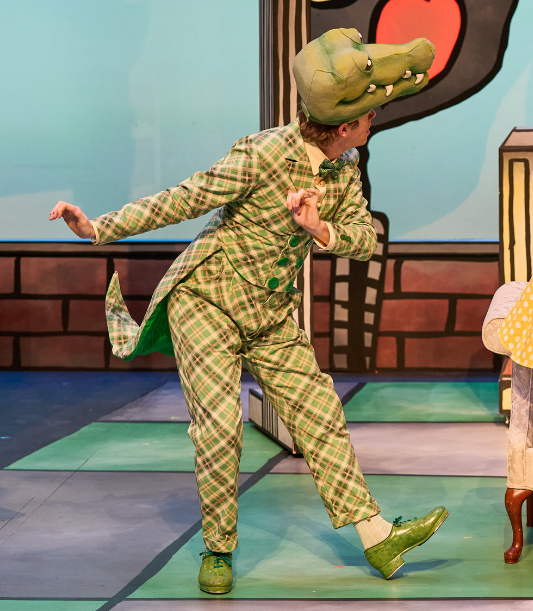 It is a great feeling to bring a character to life, specifically to introduce young audiences to the joy of theater. Lyle the Crocodile called for a tailcoat, emphasis on the tail. Using the Sartor System, I drafted a basic tailcoat, then I mocked up the jacket and tail and used the mockup to determine how dramatically the tail would flip at the end.